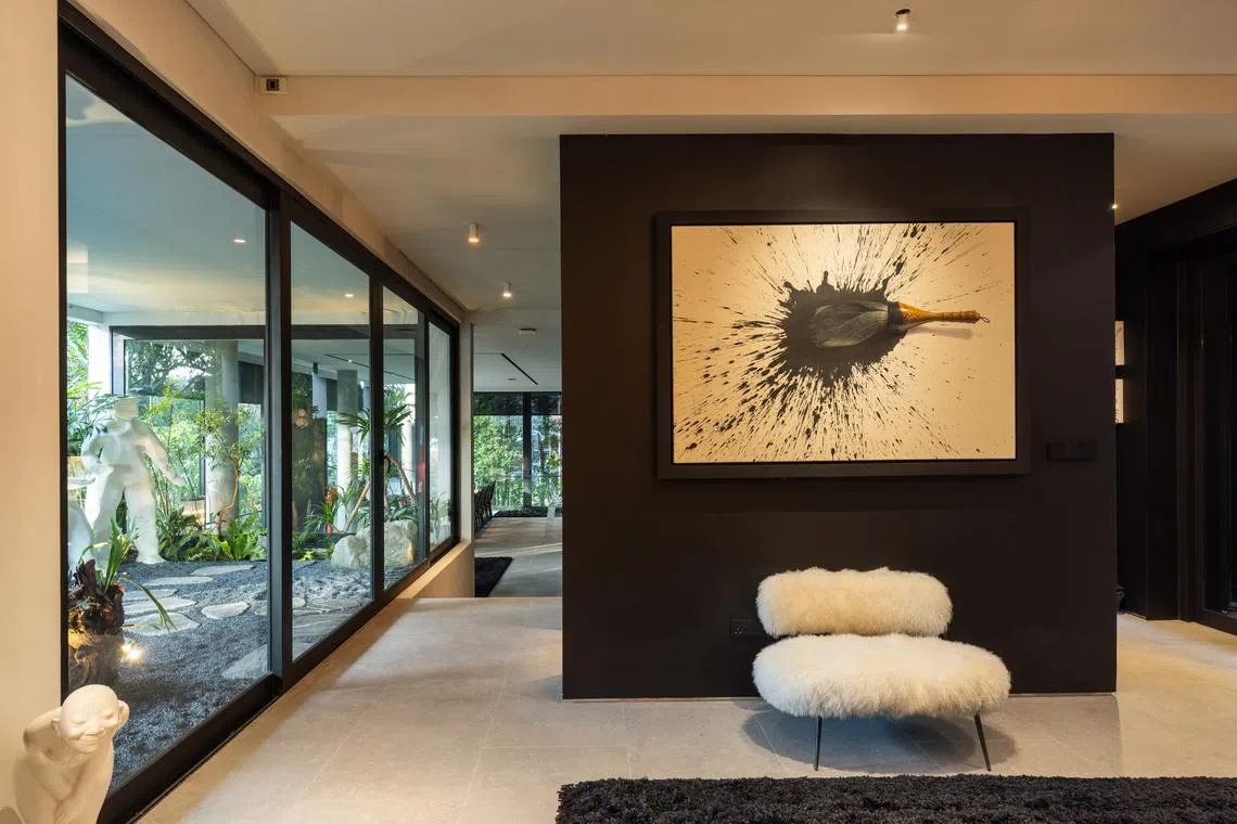 Looking outwards, one takes in views of the greenery; looking inwards, the house is akin to an art museum.