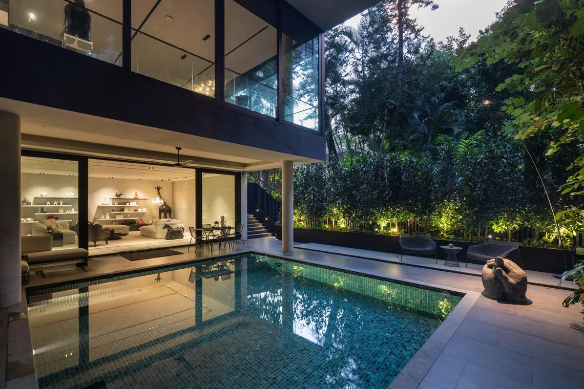 And though the placement of its living room and pool at the back, directly facing Ki Residences, is unusual, there is shelter from prying eyes thanks to trees at the perimeter of the properties – both mature and newly planted.