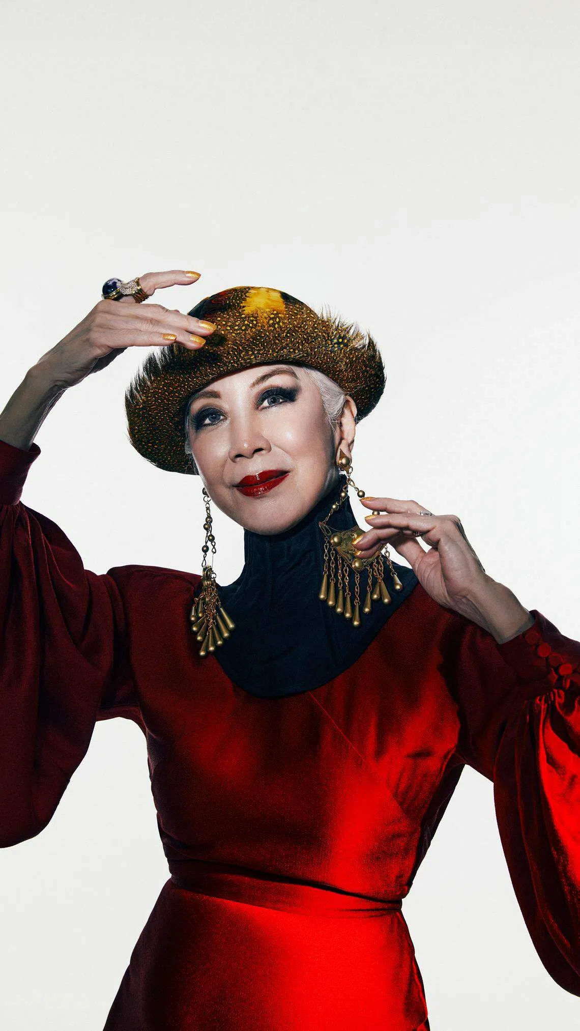 But if there’s one accessory that clearly distinguishes her from other fashionistas, it is her fabulous headgear. She has over 120 hats, from fedoras and fascinators to top hats and turbans. Several are one-off creations by trusted Singapore milliner Kristine Hakim, who studied under famous British milliner-to-the-stars Judy Bentinck.