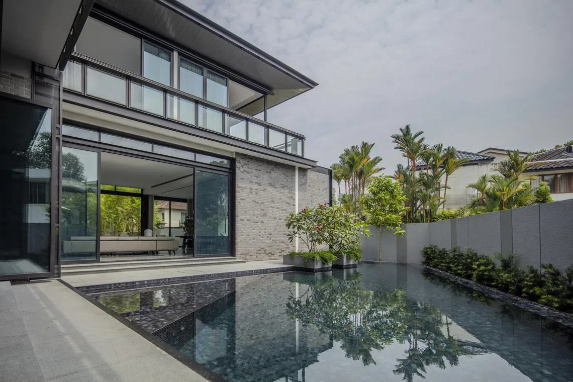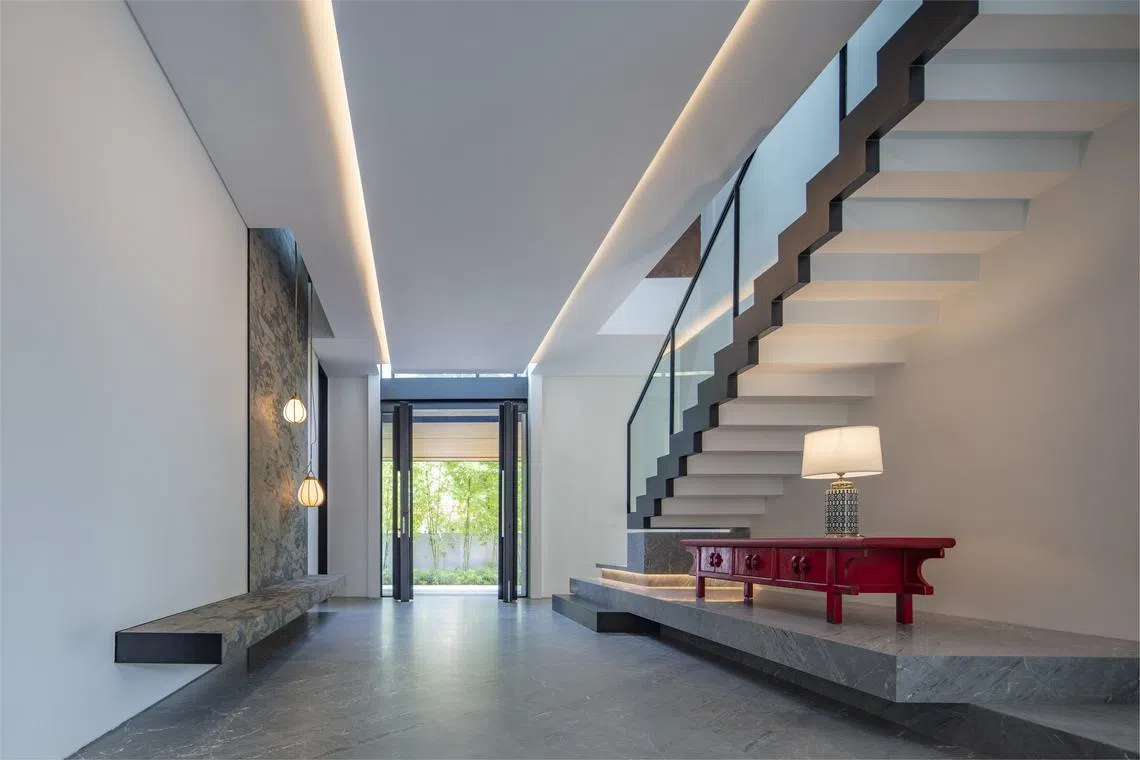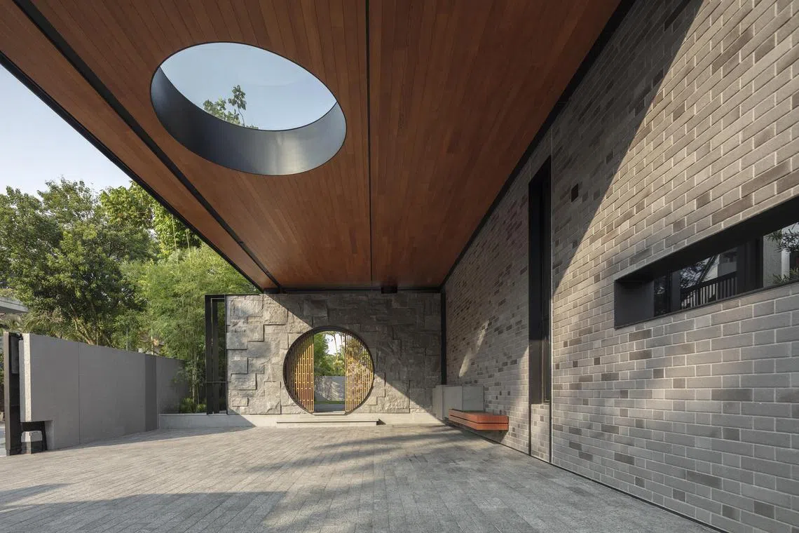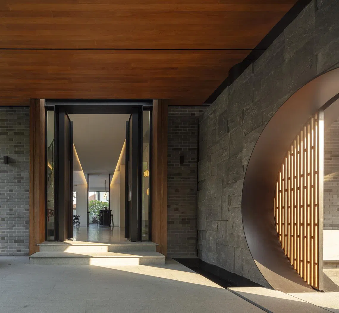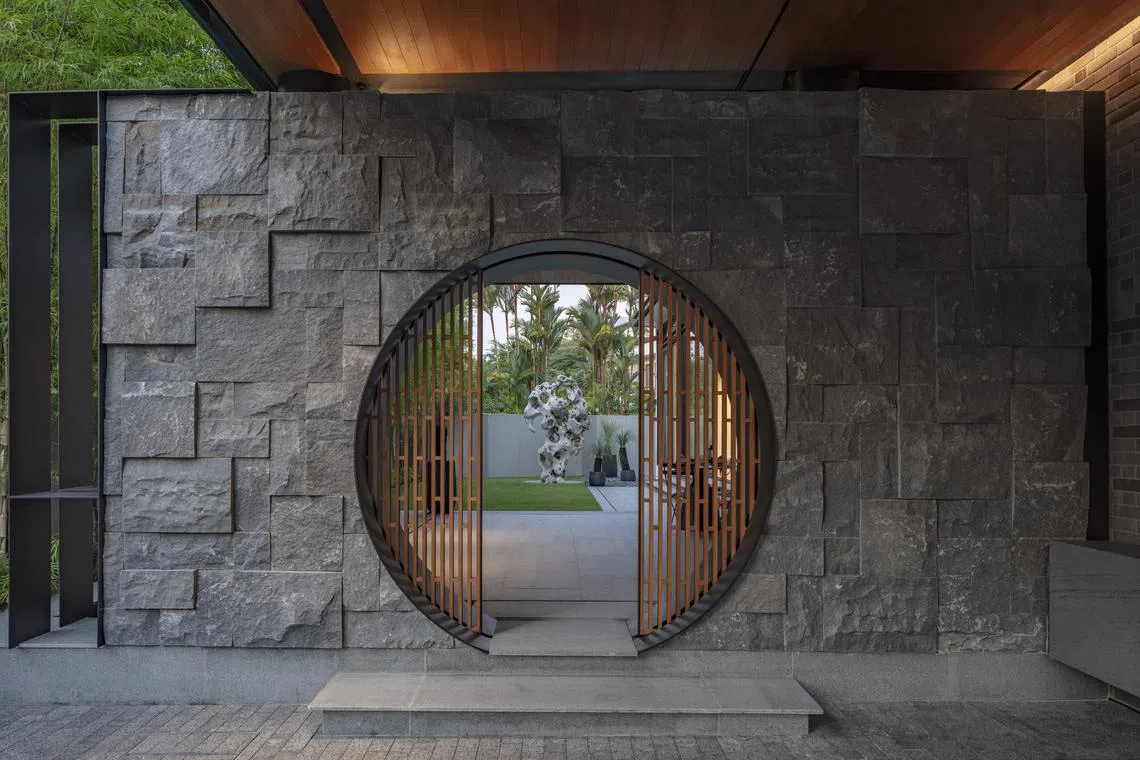 Take this two-and-a-half-storey, 6,500 square foot (sq ft) detached house in Bukit Timah. It is rife with Chinese symbolism, in both overt and subtle gestures. There are obvious devices, such as the moon gate and sliding bamboo lattice screens that greet visitors when they enter the premises.