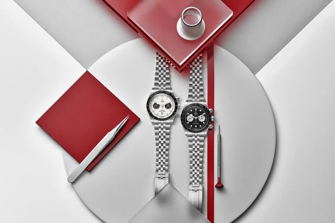 The sporty Black Bay Chrono receives an update focused on enhanced versatility. While retaining its 41 mm steel case and the choice of a striking matte black dial with silver sub-dials or an elegant opaline dial with black sub-dials, the chronograph now offers the option of both a three-link and a five-link bracelet. Crucially, both bracelet options are now equipped with the practical Tudor “T-fit” clasp, allowing for fine-tuned adjustments on the go.