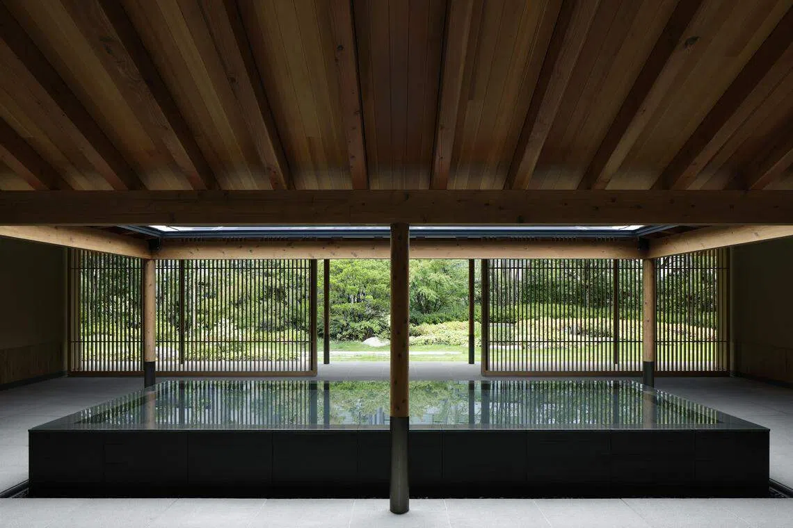 Behind the facade are stylishly understated modern buildings all conceptualised by BLINK Design, but Takagamine is the real architect here. Every line, every curve is shaped to show off the mountain in the best light. A walk from the main building to the restaurant takes you through an open courtyard with a stunning backdrop of lush forests, mirrored on the surface of a vast water basin. Wake up in the morning in your premier deluxe room and there it is again, a majestic sight right outside your window, radiating sun and burnished Autumn reds. Dip or swim in the glistening, 25-metre outdoor thermal pool filled with natural onsen water – the only one in Kyoto – and you’ll linger not just for the warmth but to bask in the view.