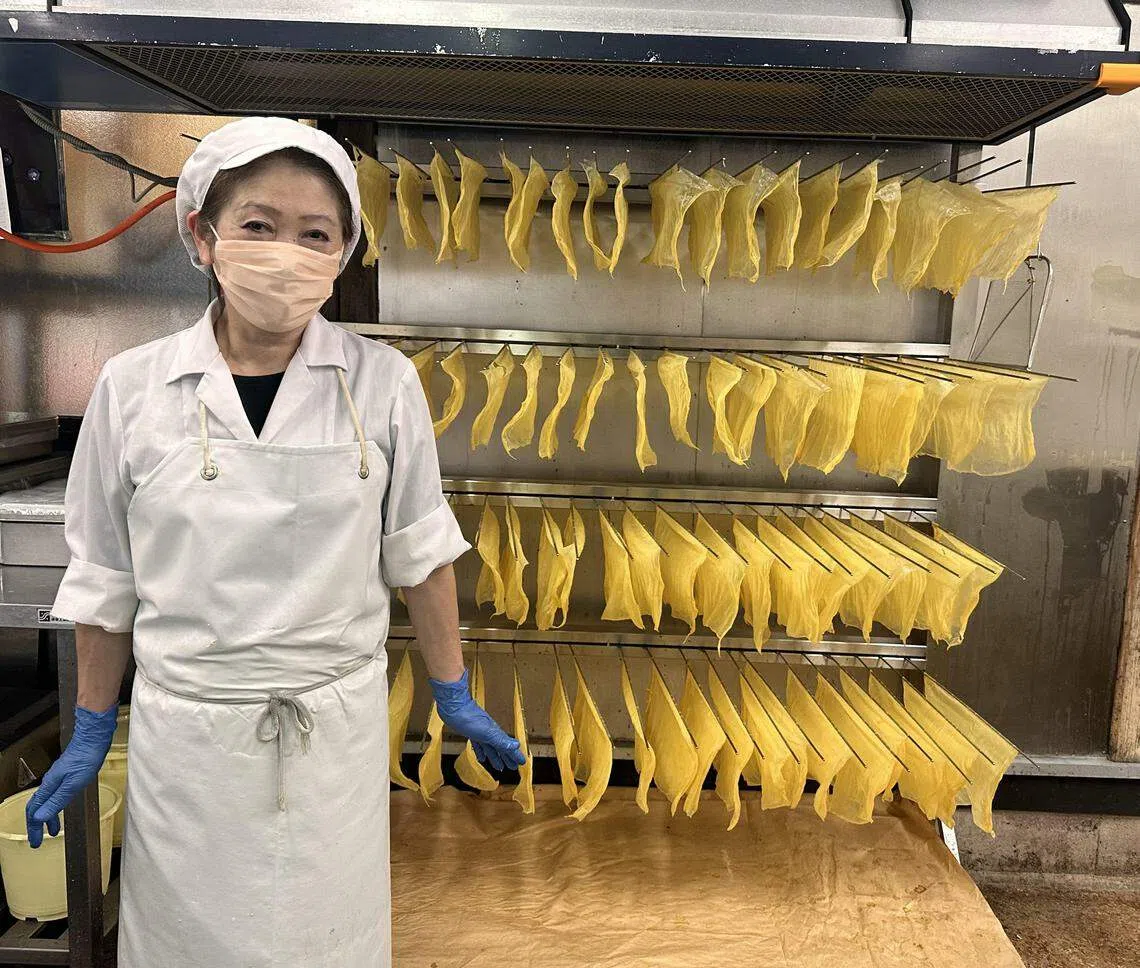 A 10-minute taxi ride from the hotel takes you to Shozankaku Matsuyama honten, seemingly in the middle of nowhere, surrounded by mountains and forest. A tiny little yuba factory is in full swing with steam furiously rising from its roof as vats of soya milk bubble and form skins on the surface that are quickly peeled off and left to dry in sheets like beancurd laundry. These sheets will later be served in a centuries-old ryotei just a short walk away.