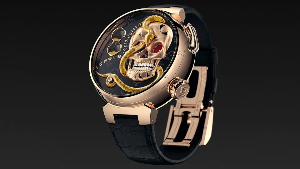 Two years in the making, the Tambour Carpe Diem is aesthetically inspired by the Vanitas - a symbolic work of art that uses skulls to depict the transience of life and the certainty of death.