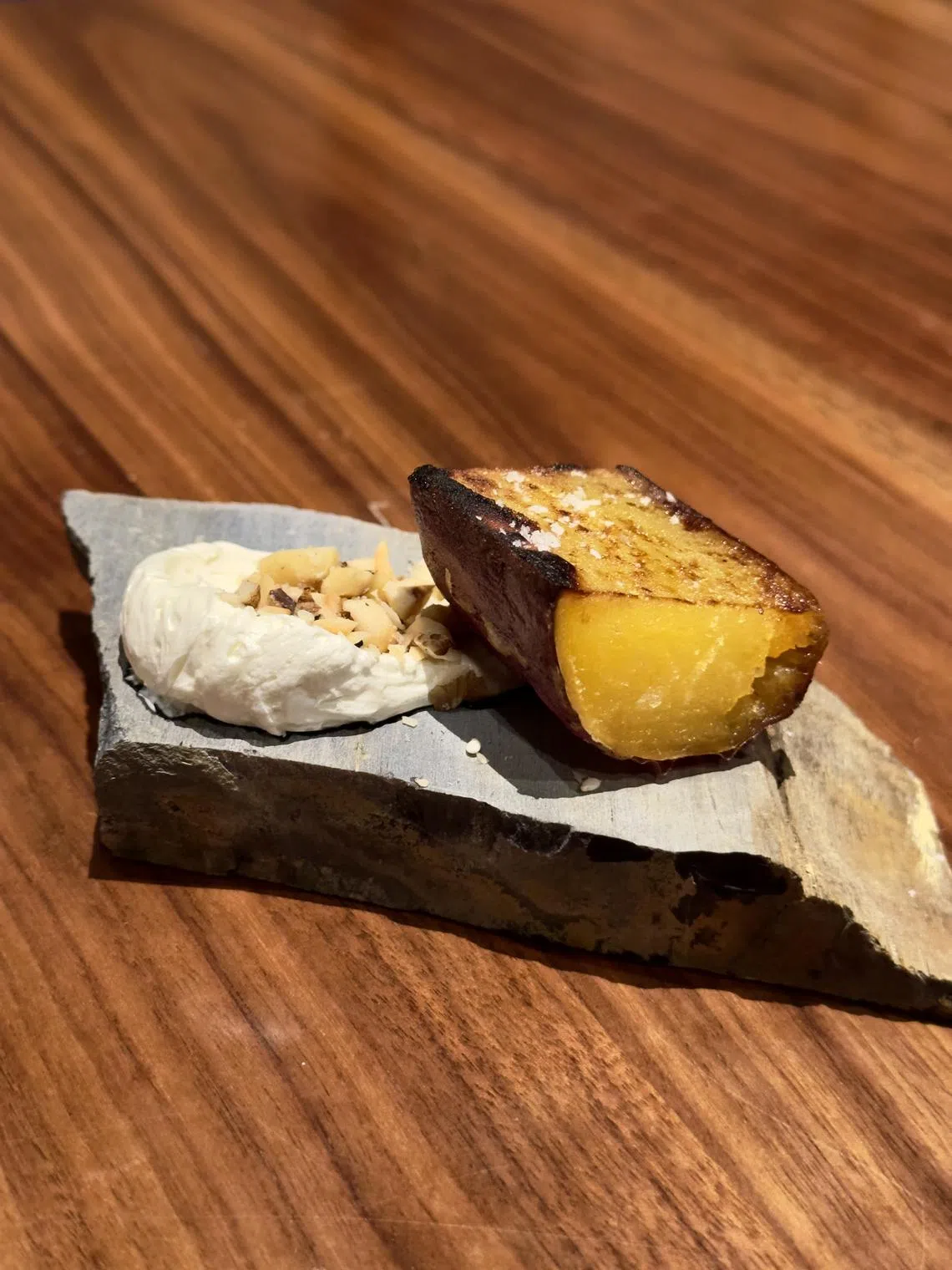 And that explains the appeal of Sanaburi’s cuisine, which is nothing like what you’ve tasted anywhere else. Depending on the menu, you might start off with a hot vegetable tea, followed by super-sweet sweet potato served with a creamy nut cheese.