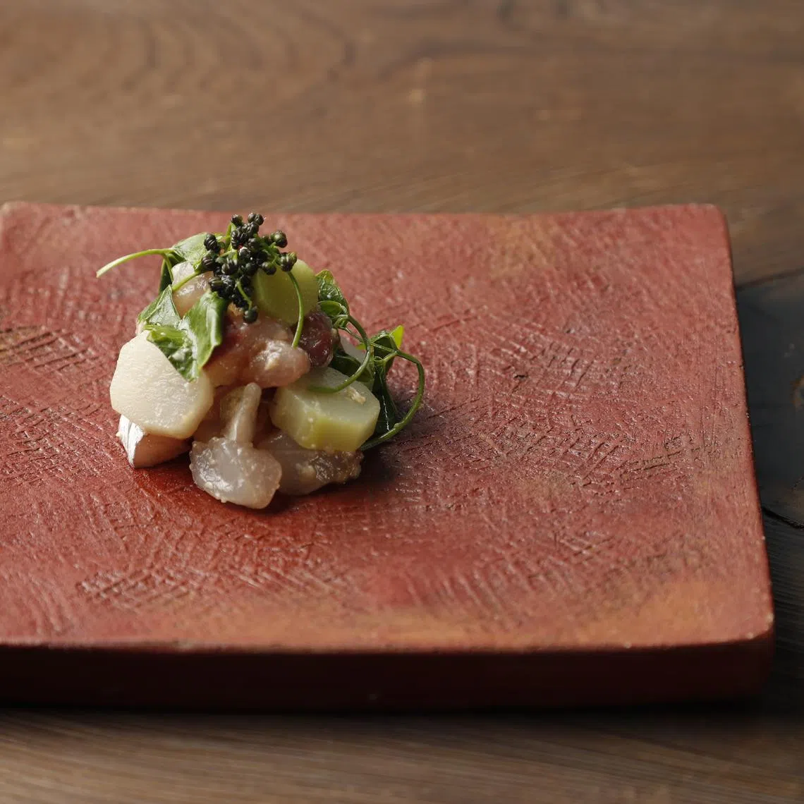 Snow carrots and watercress are tossed in a salad with strips of kawahagi fish, rice and baby fish; rice and baby potatoes are served with preserved vegetables; and a comforting chawanmushi is packed with abalone, crabmeat, monkfish liver and potatoes with the texture of mochi.