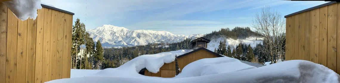 We’re assigned to a maisonette, done up like a cypress wood cabin, with even the stairs made of solid planks. An outdoor terrace with an open-air bath looks out to piles of pristine snow, and an awe-inspiring view of Mount Makihata – an almost credible alternative to Mount Fuji.