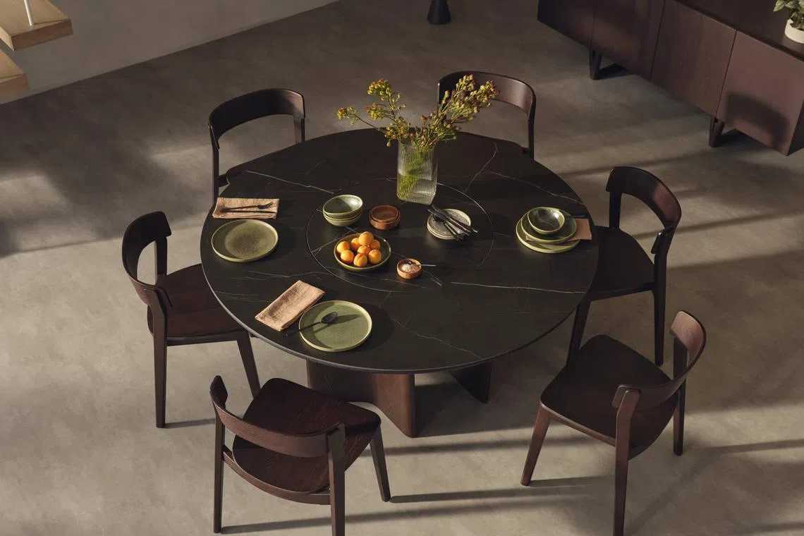 Meal times are at the heart of every Chinese New Year gathering. The round table, symbolising reunion, dissolves hierarchy and fosters dialogue. The Issho lazy Susan table from King Living is a modern version of the traditional ubiquitous lazy Susan banquet table at Chinese restaurants and homes. It conceals a self-cleaning channel to prevent the build-up of crumbs or liquids, and features a lazy Susan made with Nero Marquina marble from Northern Spain. Price: From S$5,112