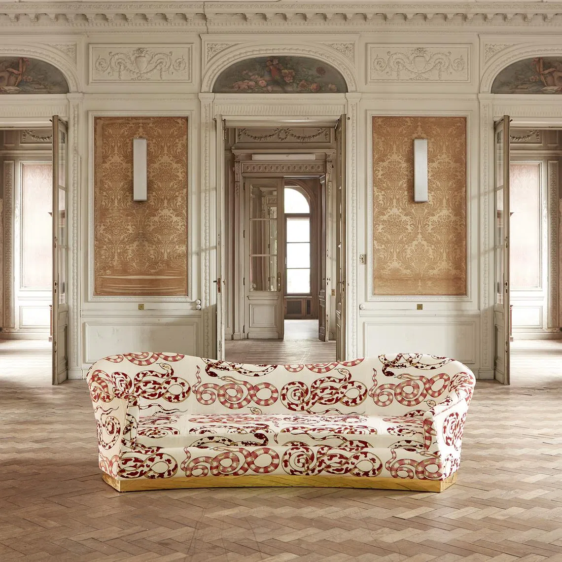 Victoria-Maria Geyer is a Belgian decorator who has created a snake-themed collection for Pierre Frey. She was fascinated by the creature’s innate femininity and mystical aura that has made it the protagonist of many collections in the world of fashion and jewellery. Her collection for Pierre Frey has two designs. One, made up of three snakes embroidered on thick linen canvas, captures the spirit of 18th-century engraved animal planks. The second is made up of ouroboros – an Egyptian symbol of snakes biting their tails. Price: On request