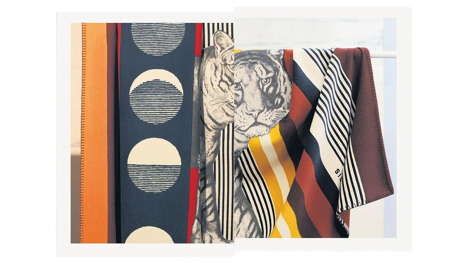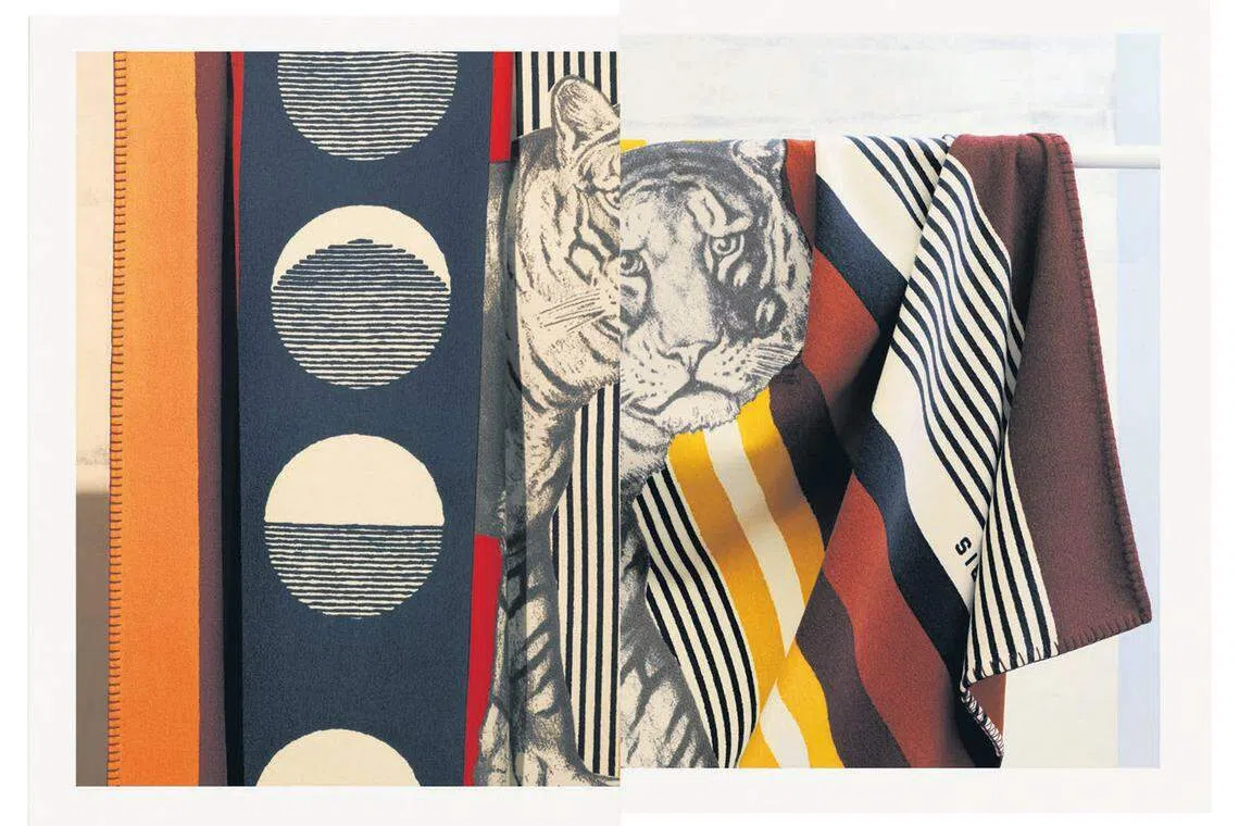 Add a feline touch to an armchair by draping this velvety cashmere blanket over it. A drawing of the tiger majestically walking out from a backdrop of stripes, is printed on the blanket using the screen technique. Tigre Bayadère blanket, S$6,800. Available from Hermès.