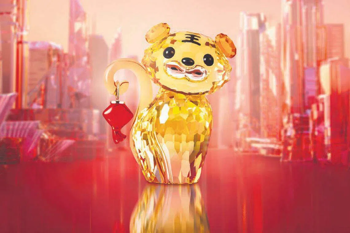 A lucky ornament to place in the children's bedrooms or a gift for the young at heart. The playful looking tiger holds a Chinese lantern on its tail for luck. With 390 faces of yellow, brown, black, clear and red crystal, this tiger is bound to shine all year round. Crystal tiger ornament, S$215. Available from Swarovski.