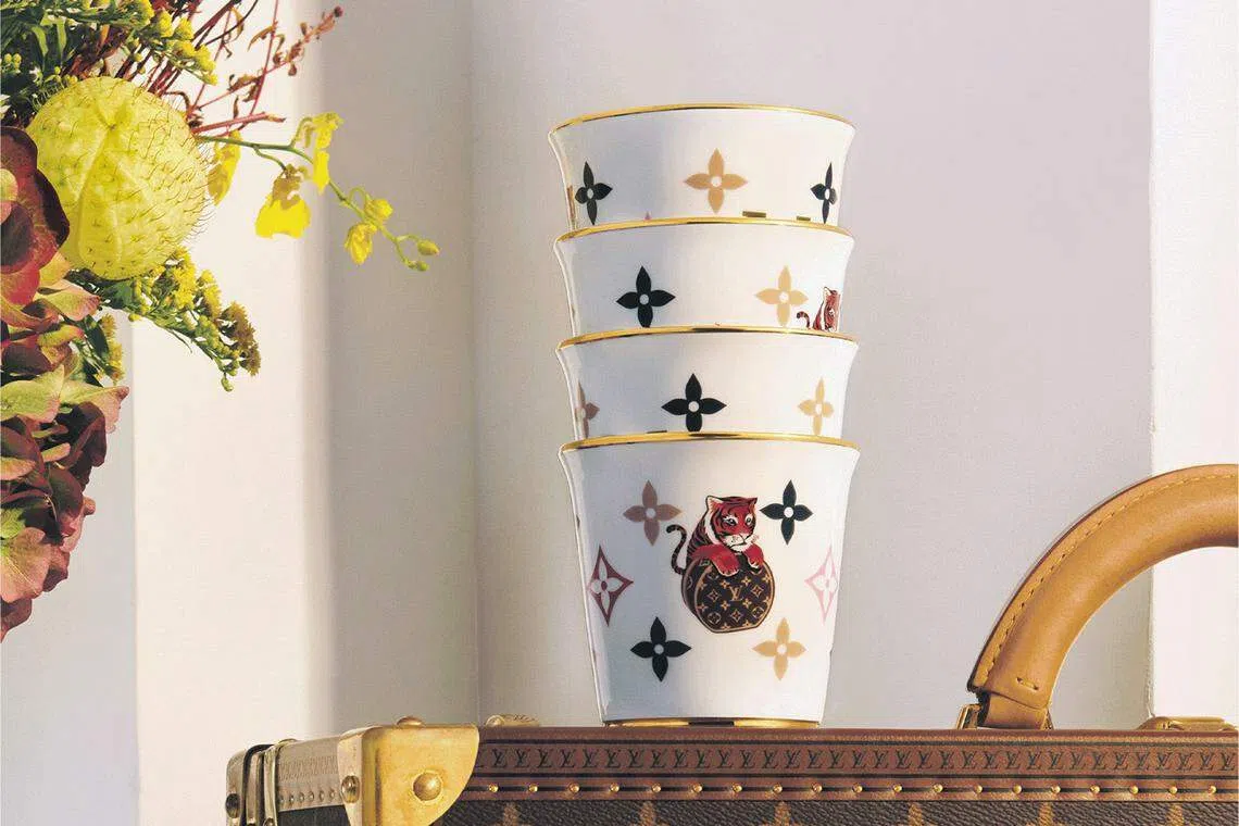 Serve guests aged pu'er tea in these fine porcelain cups, which feature the majestic tiger with the iconic House motifs of Louis Vuitton. The cups come with gold rims for that auspicious touch. Set of 4 cups, S$1,490. Available from Louis Vuitton.