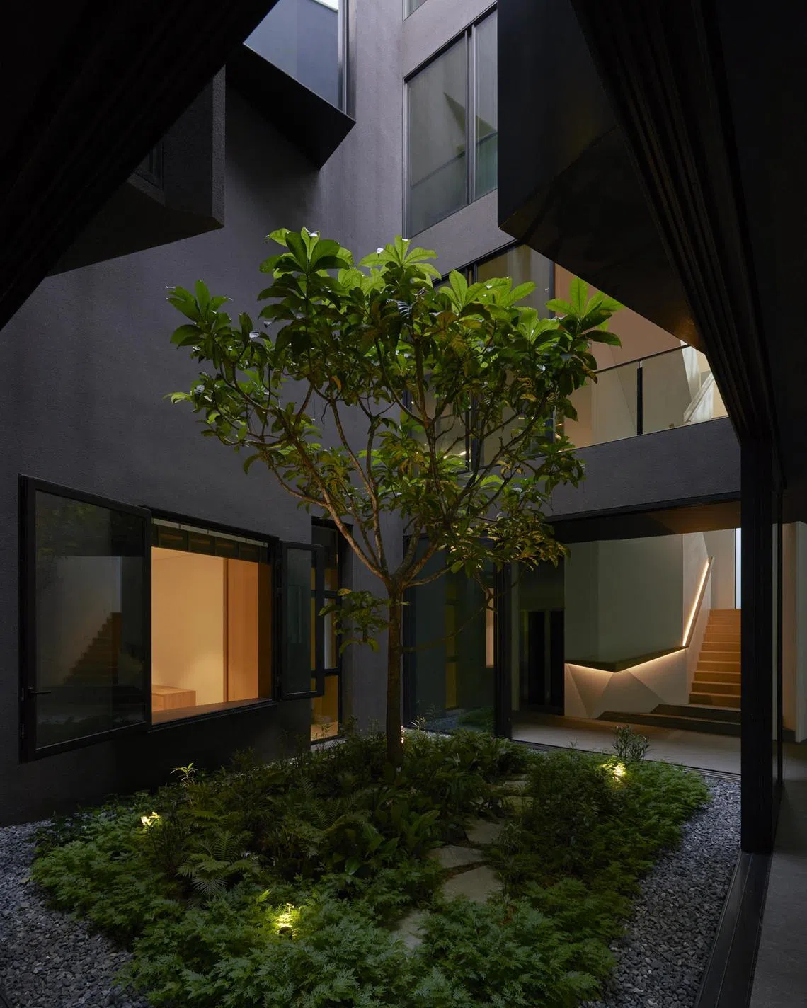 A key feature of the entire dwelling is the central courtyard, which coincidentally aligned with the family’s feng shui master’s recommendation that the centre of the house remains a void.