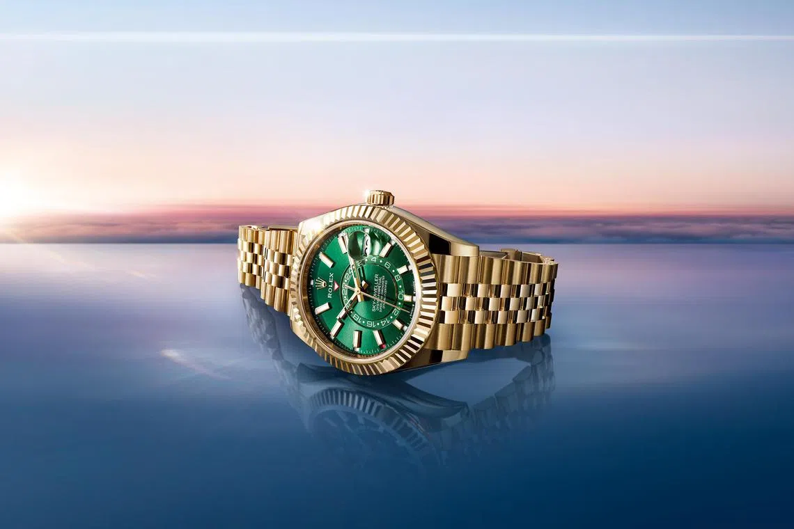 As a constant travel companion, the Sky-Dweller now also dons a sunray-finished dial in bright green.