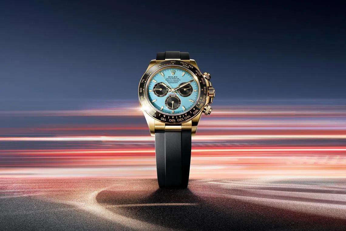 These three iconic timepieces already stand out for their technical brilliance and emblematic design. But, in the case of the Cosmograph Daytona, which is synonymous with motor sports, it now boasts a turquoise blue and black dial with snailed counters.