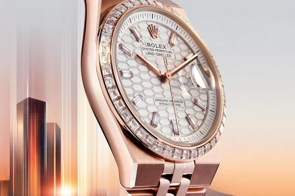 The Land-Dweller launched this year introduces a new Rolex collection with a new movement. The watch, which has 32 patent applications, is identified by its bold lines and an integrated bracelet that extends seamlessly from the redesigned Oyster case.