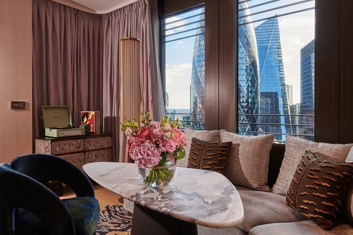 The 43-storey, Yabu Pushelberg-designed landmark sits on 80 Houndsditch, in the heart of Bishopsgate – striking glass and steel on the outside, understated luxury within. Away from the cacophony of the streets, a sense of calm takes over as you settle down over tea and pastries at Ginger Lily, a cosy lounge by day, buzzy cocktail bar by night.