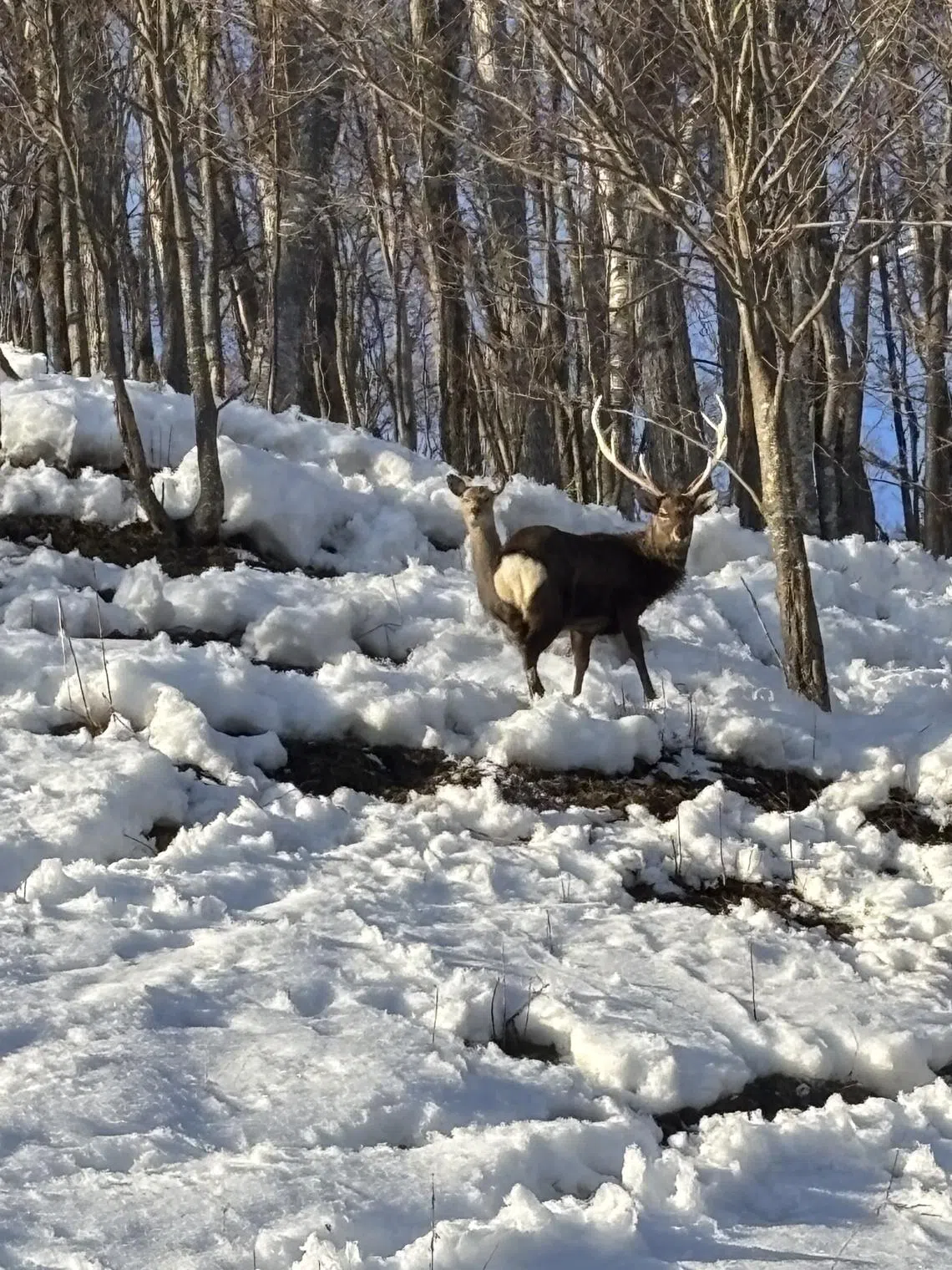The beauty here is undeniable. On clear days, you’ll enjoy mountainous views in the distance. As we drive along the country road, we even spot families of wild deer galloping on the undulating terrain, and lone foxes trotting across the snow.