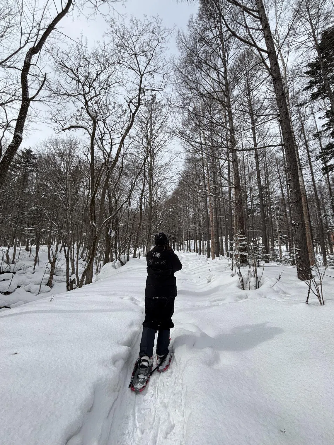 Another highlight of our visit is a “snow picnic”, a guided snowshoe trek through serene, white-blanketed forests. You can think of it as forest bathing, but in deep snow. Along the way, our knowledgeable guide, Toshihiro Kato of Wokkys Outdoor Tours, points out the tracks of animals ranging from deer to foxes (which he notes walk like models on the runway).