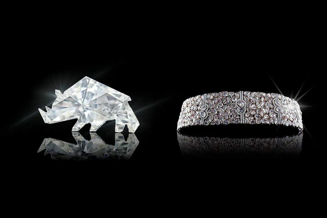 House of Gems will also be there with a rhino-shaped diamond - the first-ever diamond graded by the Gemological Institute of America as a "Rhino Modified Brilliant". There will also be fancy colour diamonds that range from pink, blue, green and yellow, Kashmir sapphires, and Burmese pigeon blood red rubies.