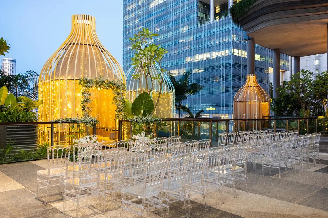 To make the most out of the special garden setting, the hotel offers three Singapore-centric wedding themes: ocean-inspired, with soft pastels evoking the tranquil beauty of the sea; a lush botanical set-up; and a contemporary, sophisticated “archi-luxe” setting that pays homage to the building’s distinctive architecture.