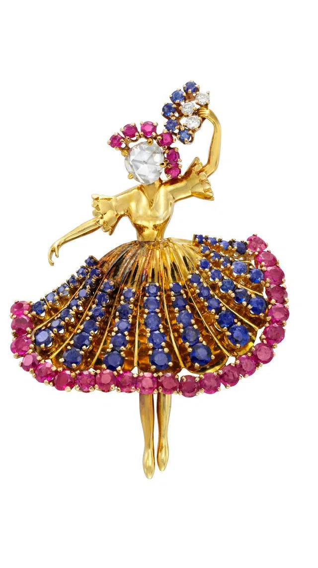By 1941, Van Cleef & Arpels had created its first Dancer clips. Under the skilful hands of master craftsmen, the delicate figurines seem to come alive flying through the air, or with their golden arms and legs poised in mid-dance, bejewelled skirts flowing with the joy of movement. Instantly recognisable and collectible, these meticulously handcrafted feminine figures soon became one of the maison’s signatures.