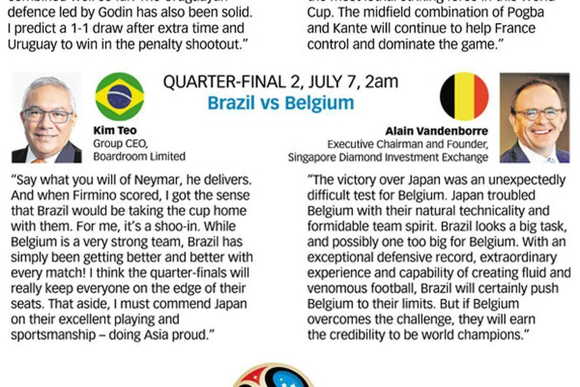 BT-World Cup CEO ChallengeShareAdd BT as a preferred sourceAdd BT as a preferred sourcePublished Thu, Jul 5, 2018 · 09:50 PM Copyright SPH Media. All rights reserved.Reuse this contentFeedback