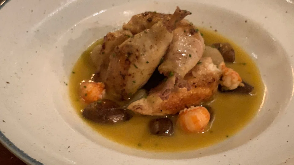 Also promising is the crayfish and chicken fricasee (S$32), although there's more chicken than crayfish, which come in little marble sized nuggets compared to the larger serving of slightly dry spatchcock in a mild seafood gravy with onions and mushrooms.