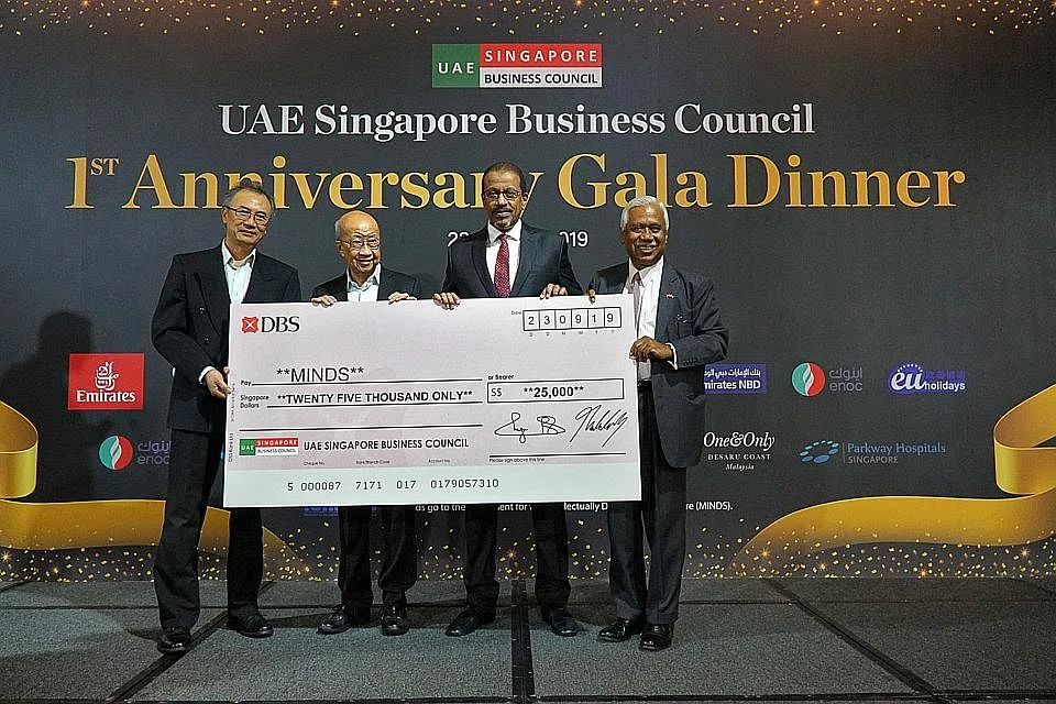 THE UAE Singapore Business Council (UAESBC) celebrated its first anniversary with a charity gala dinner, at which a total of S$35,000 was raised for the Movement for the Intellectually Disabled of Singapore (MINDS).