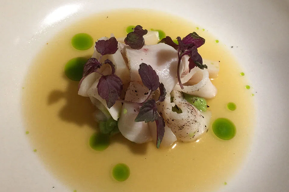There are fewer curve balls in the fatty but bouncy 12-hour slow- cooked Iberico pork collar (S$36) presented in thick gelatinous chunks ringed with parsnip purée and charred green onions. Not an earthshaker but a welcome taste of familiarity.