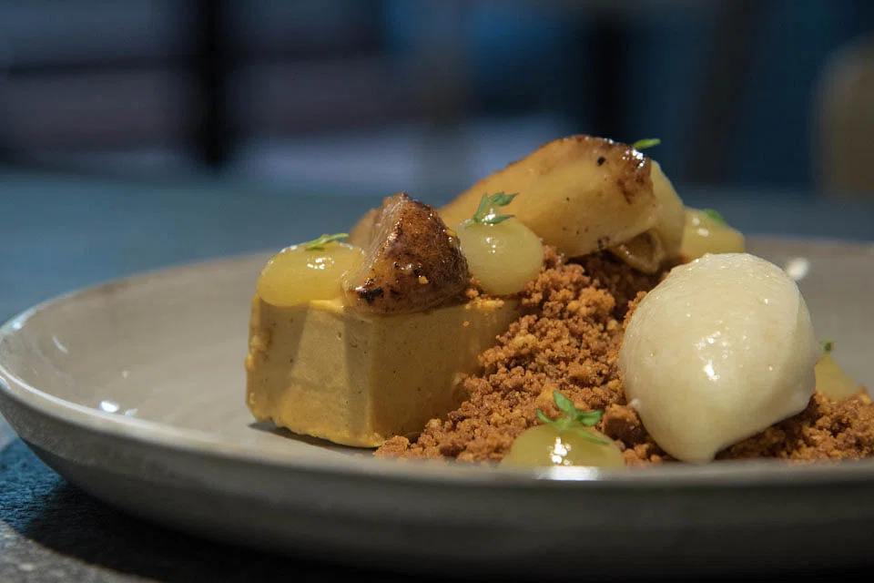 Less so is the burnt pear's odd gummy-textured caramel yogurt parfait (S$15) - a mystery pudding that is neither caramel nor yogurt-like. We're not even sure if it's sweet. Neither do we like the health-conscious crumble that refuses to let any sugar pollute its tasteless being. The pear sorbet and roasted pear wedges offer the only reprieve.