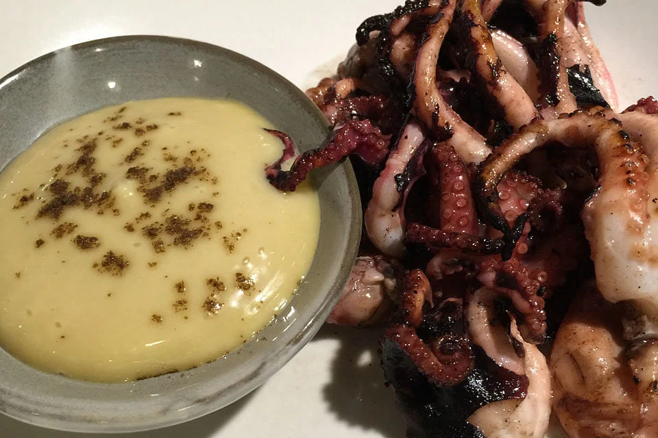 The unruly tangle of tentacles and flesh are nonetheless well-charred and boast an appetising wok hei - and smoked miso mayo made out of emulsified miso, olive oil and white vinegar. The mayo cuts the monotony, but the octopus/squid can stand on its own, well, suckers.