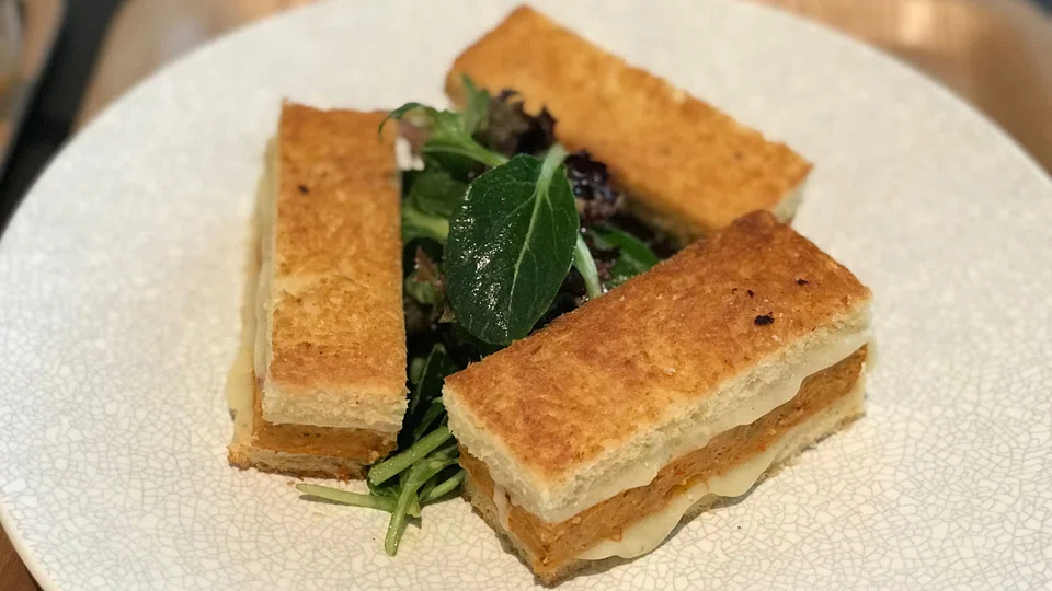 Both the chicken and beef broths are good - just a tad oily but rich and comforting, poured out of dainty tea pots and a worthy component of any paleo diet. The otah sandwich (S$16) is nothing that you can't do with a similarly thick slab of decent spicy fish paste sandwiched between thick buttered toast and gooey melted Comte cheese.