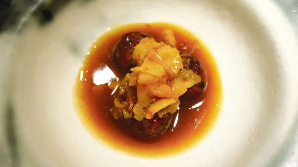 Smoky mackerel on dashi jelly; seaweed cracker and sea urchin; and marinated tuna slices have a bit of a Japanese wannabe feel to it. It gets more interesting when Spanish and Nordic influences kick in, as in a rich pigeon carpaccio and pickled pumpkin, and amazingly chewy, tender gnocchi in a sticky sauce given a gelatinous oomph with lovely cod belly that has the texture of Chinese fish maw.