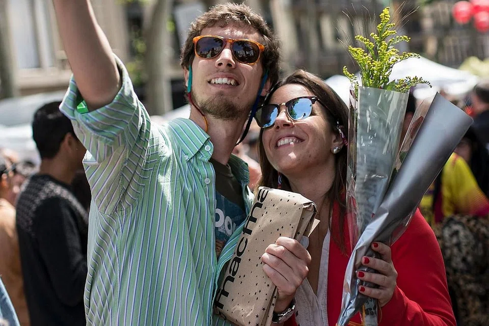 Every April 23 on the day of Sant Jordi, or St George, people in the wealthy northeastern region give each other a rose or a book in a celebration of love and culture.