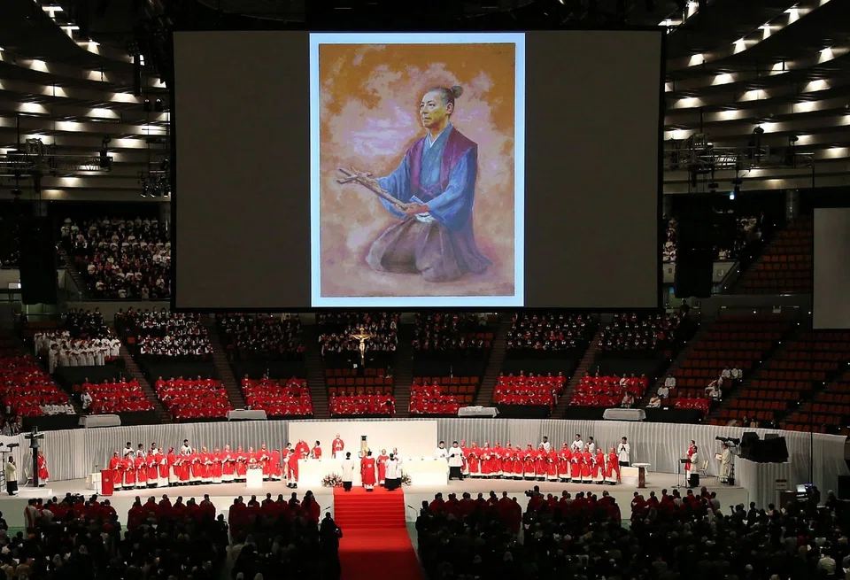 About 12,000 people attended the ceremony for Takayama Ukon in Osaka which was conducted by Cardinal Angelo Amato, representing Pope Francis, and is a step on the path to possible sainthood.