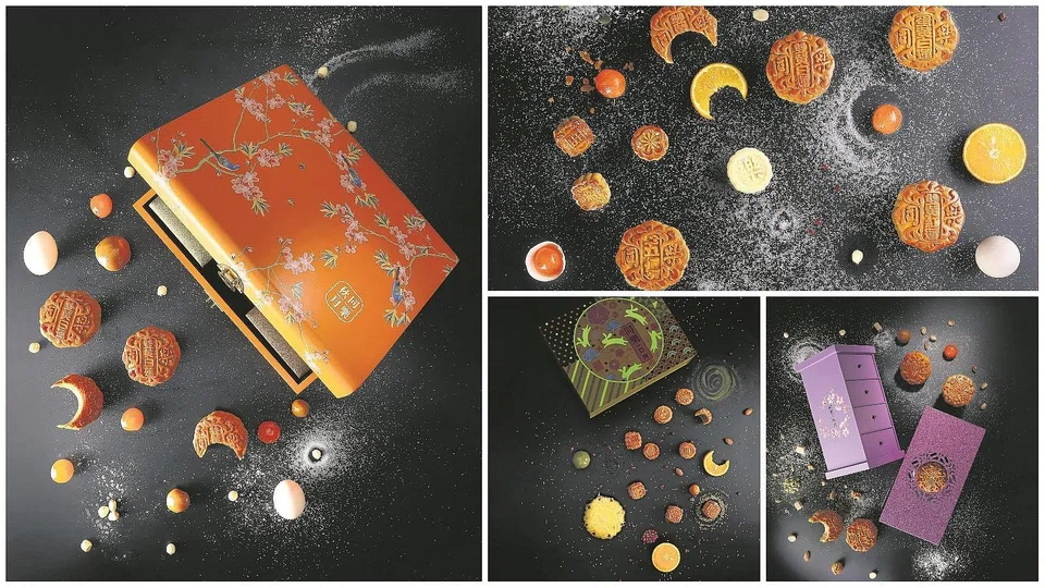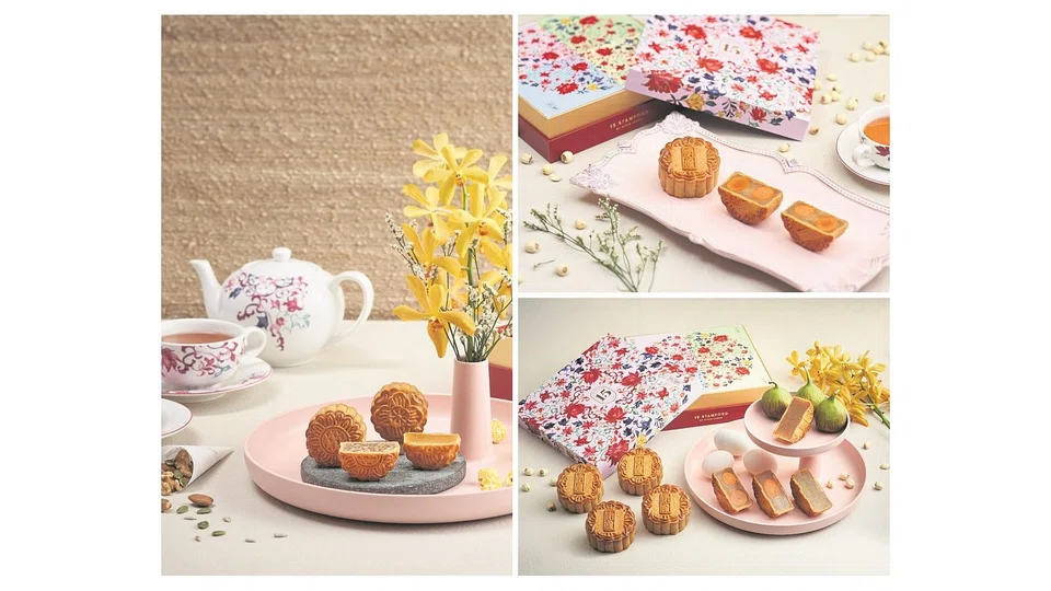 Demon Chef Alvin Leung puts his own spin on mooncake traditions at The Capitol Kempinski Hotel. His signature Mini Theatre Combo set is inspired by the Capitol Theatre and features Caramel Mixed Nuts and Mini Golden Corn mooncakes (S$68 for 8 pieces). Traditionalists can have the classic White Lotus Seed Paste mooncakes (S$68), which also comes in single salted egg yolk (S$74) or double yolk (S$78) versions. For something a little more adventurous, Chef Leung proudly unveils American Fig mooncakes (S$72) which is chock-full of fruit, with fewer calories. If you can't decide, get one of each with the Mixed Baked Mooncake set (S$73).
