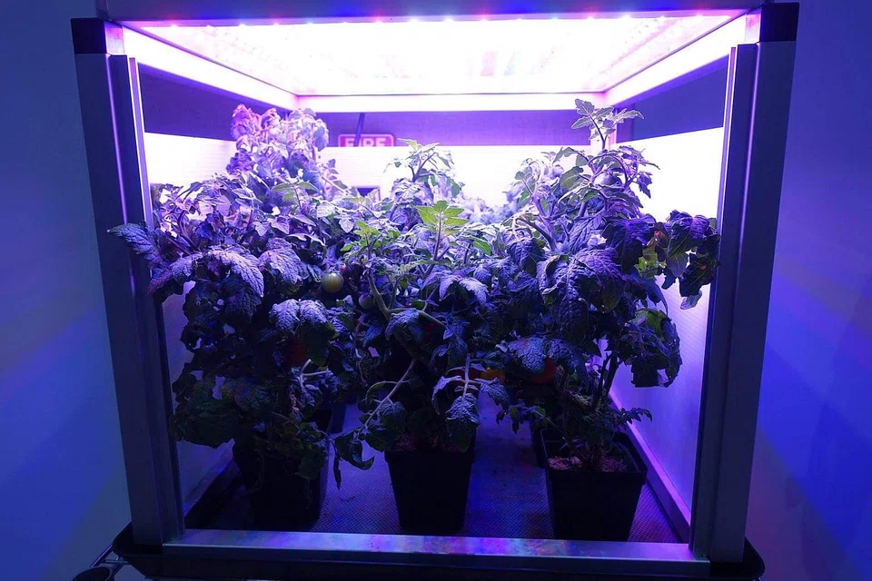 The first portable growing box for space, equipped with LED lights, called Veggie, was tested at the orbiting outpost in 2014.