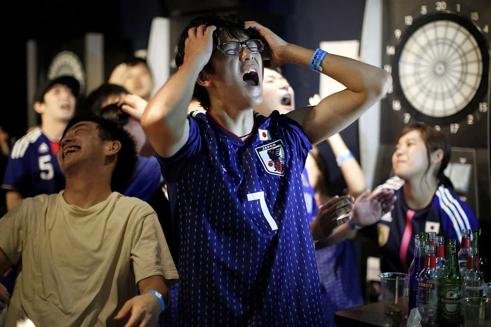 Fans at the bar, some dressed in their team's blue strip and with Japanese flags painted on their cheeks, had exploded with joy when Takashi Inui scored the team's second goal.