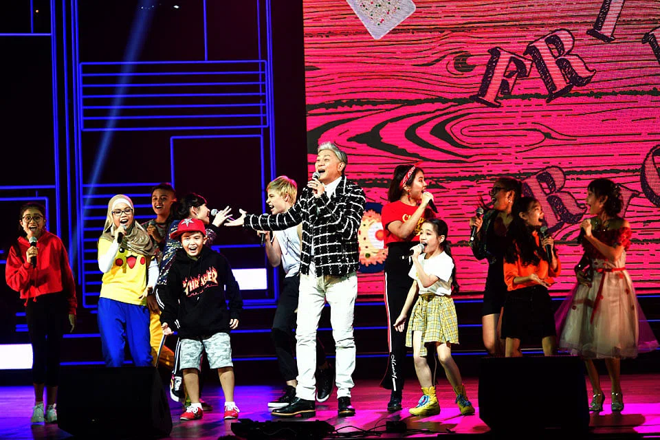 As the evening drew to a close, ChildAid's creative director and veteran musician Dick Lee took to the stage to sing two of his iconic hits, Bunga Sayang and Fried Rice Paradise. He sang the former solo while playing the piano, and the latter with the full cast of 132 enthusiastic kids.