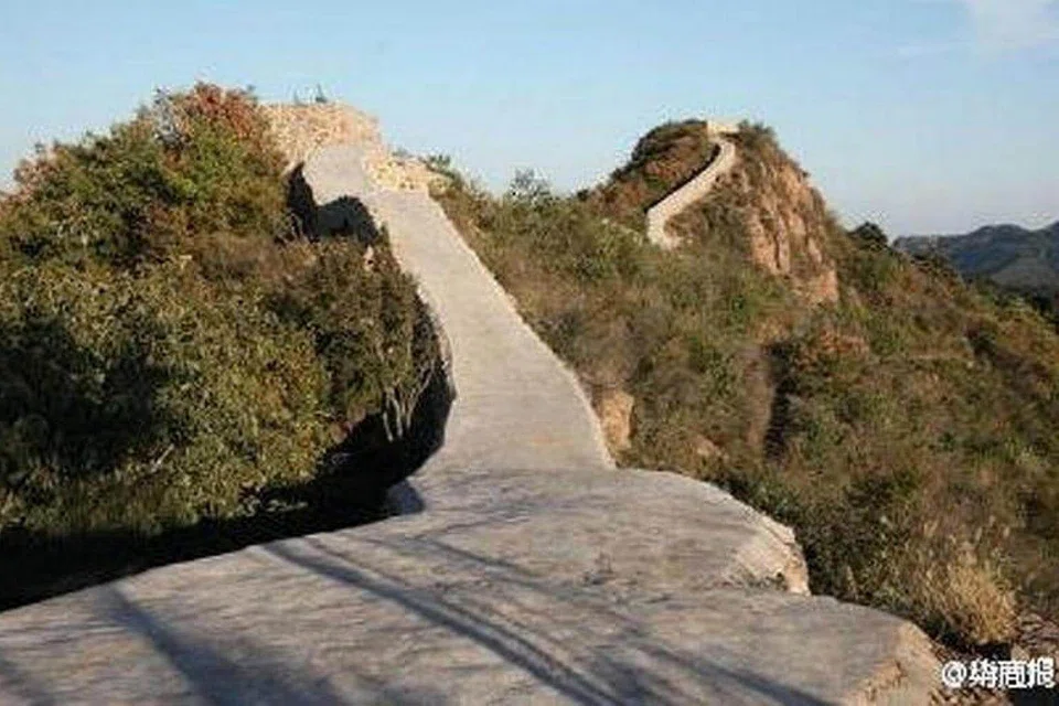 [BEIJING] Chinese social media users were in an uproar Friday over restoration of a 700-year-old section of the Great Wall that has been covered in concrete, turning it into a smooth, flat-topped path.