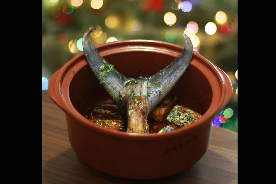 The star of the dining table is chef Sauro's Sgombro al Forno, which is an oven-baked mackerel in tomato sauce. He says of the dish: "I grew up eating it. A long time ago, mackerel was considered a poor man's fish, and everyone could afford it. Over time, it became traditional to cook it during the festive season. We always use terracotta pots because then the dish keeps for a few days."