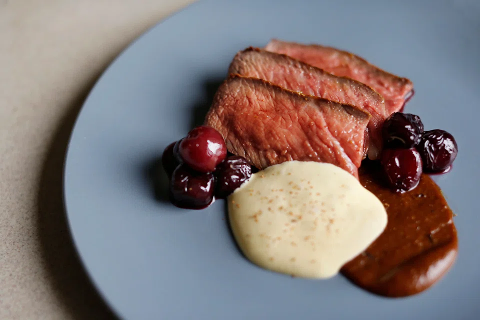 Instead, the centrepiece will be a bone-in prime rib of beef with a Hollandaise-like eggnog sauce and cherries.