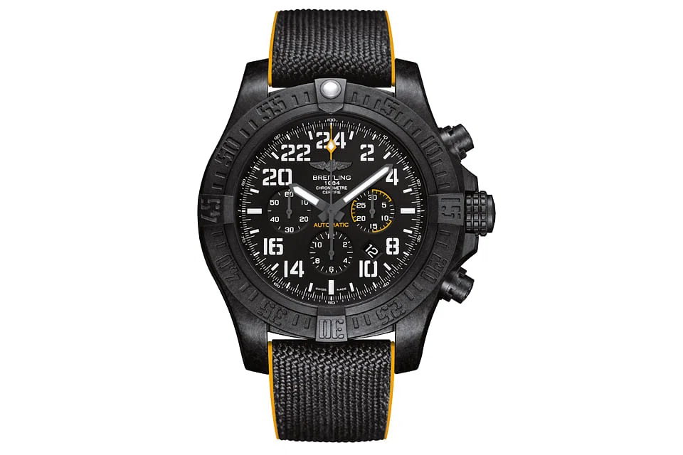 The timepiece is an eye-catcher, to say the least, with its extra-large 50mm diameter case constructed out of a futuristic material the brand dubs "Breitlight", which is 3.3 times lighter than titanium and 5.8 times lighter but yet significantly tougher than steel.