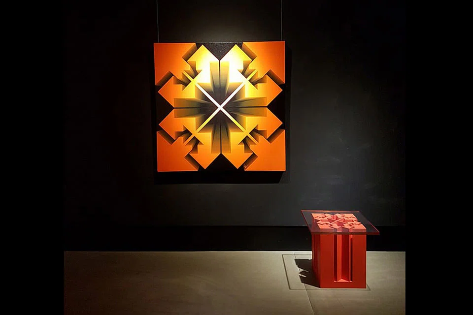 AN architect and fashion designer by training, Lakshmi Mohanbabu created the Interaction Series of artworks (including the one at right) which comprise paintings inspired by the concept of the mandala, which she then pairs with their sculptural versions.