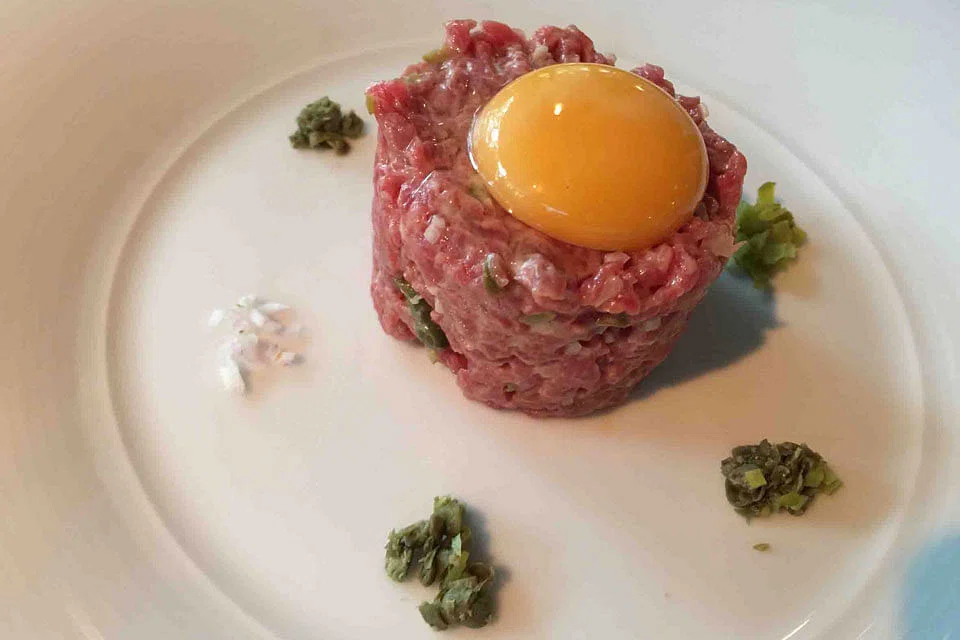 The first dish to arrive after a little amuse bouche of cauliflower mousse is beef tartare (S$26) - a simple yet satisfying mound of hand-chopped raw tenderloin with just the right bite and smooth, clean flavour of fresh meat. The condiments of pickles, capers and onions add enough tangy distraction while the raw egg yolk binds it all into a silken mixture to be spread on warm toast.