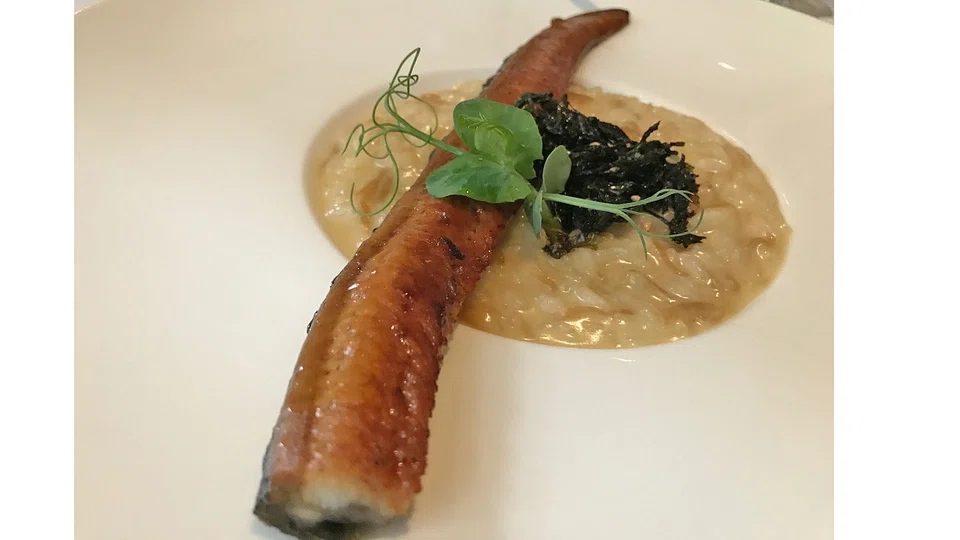Risotto with unagi and seaweed (S$28) is rich as rice cooked in stock and cream can be, and the added sweetness from onion confit makes it tasty but cloying. The real reason to order this would be the plump, succulent eel that stretches from one end of the plate to the other, basted just enough in sweet sauce without being overpowering.