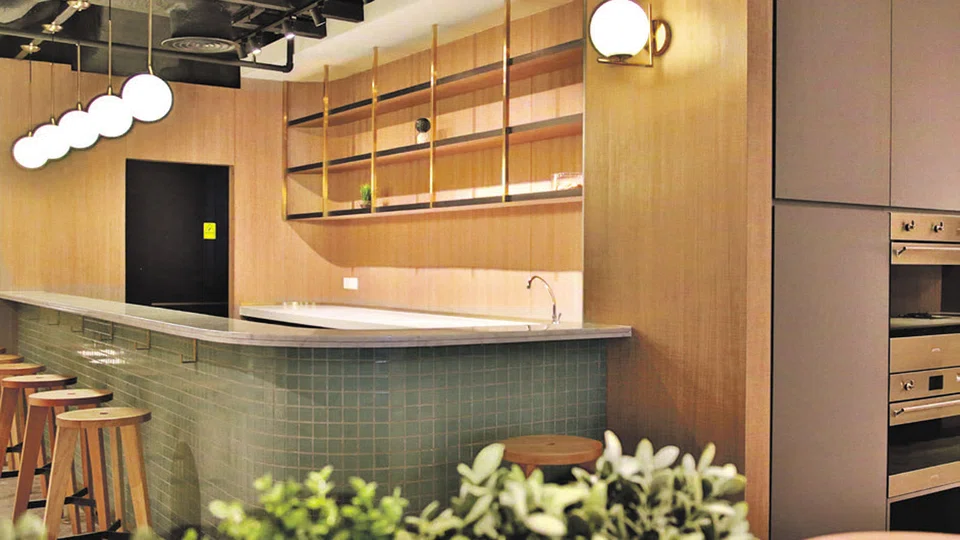 A first of its kind in Singapore, the OUE Social Kitchen is designed as a communal space or "co-cooking space" for friends, families, and strangers to meet and cook at a common table.