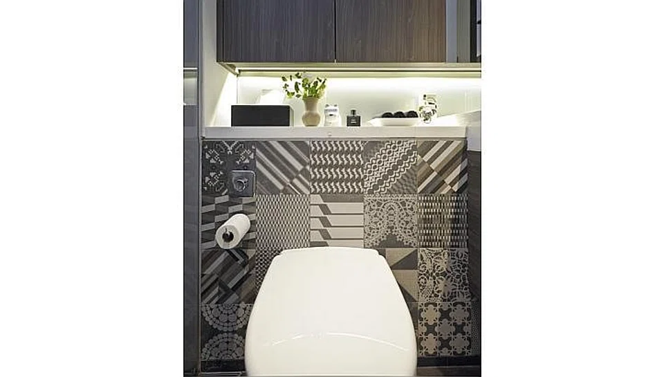 His company offers a wide range of floor materials, from tiles to stone and mosaic. With more than a decade's experience in the industry, Mr Tan knew exactly which material he wanted for his home. His choice is a large format porcelain stoneware tile in a warm grey shade from Italy, for the kitchen, living and bedrooms. "Using just a single type of tile makes the different areas in the apartment appear seamless and therefore bigger," he says. "A large format tile has a more luxurious look compared with smaller tiles." He adds that perfectly matching coloured grout and tiles are crucial to achieve the seamless look.