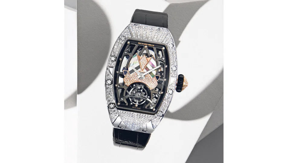 The dazzling, bejewelled RM 71-01, powered by an automatic tourbillon movement that's Richard Mille's first of the kind, has been literally given a woman's touch. The team that created it was led by Cecile Guenat, who graduated from the Geneva School of Arts and Design and earned her spurs in the world of fine jewellery. She is the daughter of Richard Mille's co-founder Dominique Guenat.